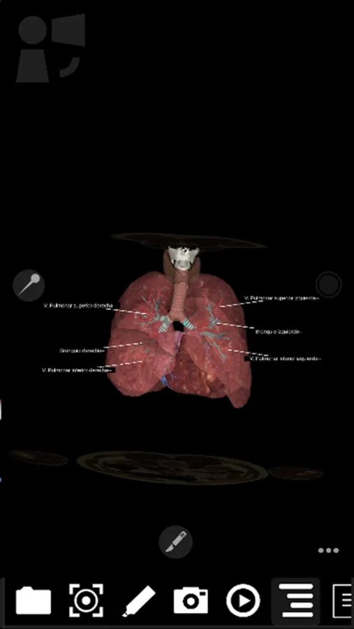 3dissect es un atlas de anatomía portable y realista que presenta órganos generados a partir de imágenes de cortes de un espécimen real. 3dissect móvil permite establecer visibilidad de órganos y sistemas para hacerlos transparentes, ocultos ó visibles, también es posible ver el modelo desde cualquier órgano y distancia. 3dissect incluye cortes a color en los planos transversal sagital y coronal, los cuales se superponen al modelo y se pueden usar para cortar órganos y/o sistemas. Los usuarios pueden agregar pines para nombrar órganos y estructuras anatómicas o para incluir vínculos a recursos de internet. 3dissect incluye un gestor de archivos que permite guardar las escenas creadas durante las diferentes sesiones así como compartirlas con otros usuarios. El painter de 3dissect permite la edición de esquemas a partir del modelo de 3dissect en cualquier estado de visibilidad. Una vez las escenas se han hecho públicas se puede obtener la dirección url de la escena para incluirla dentro de una lección de e-learning. 3dissect permite presentar evaluaciones creadas por otros usuarios.