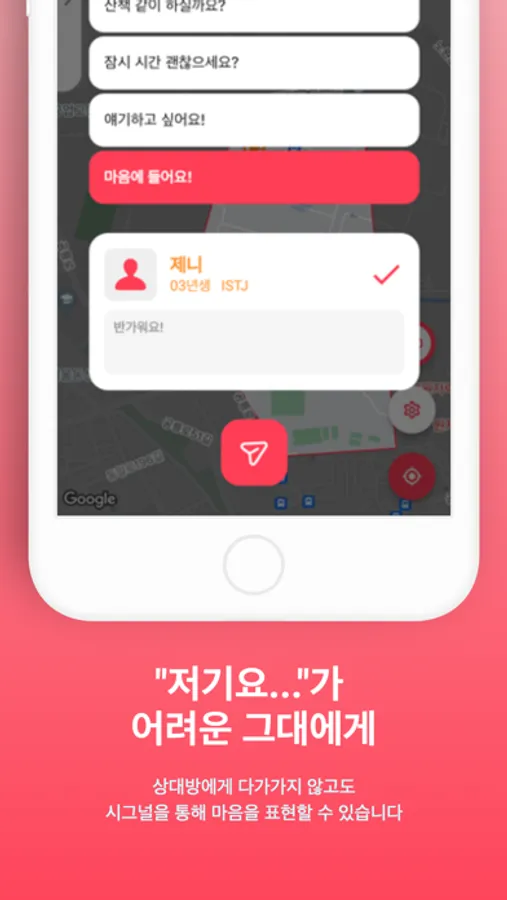 다가가서 말을 걸지 않고도 마음을 표현할 수 있는 도구(시그널)를 제공합니다.