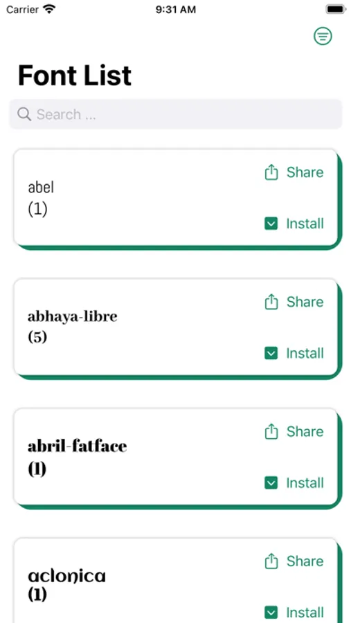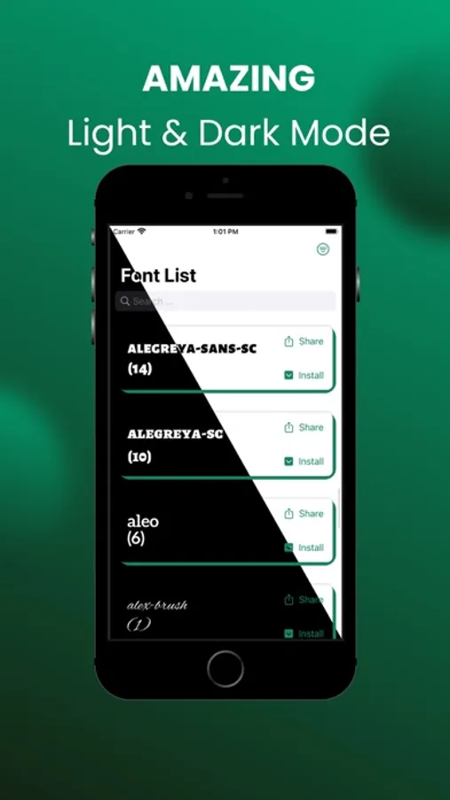 Browse 2000+ fonts and choose the one that makes the best of your idea, the app also comes with builtin search to let you choose the font easier.