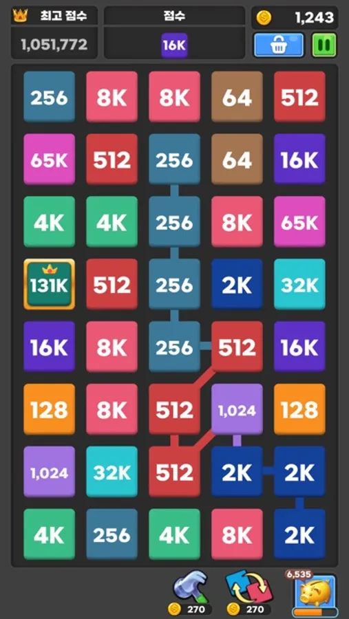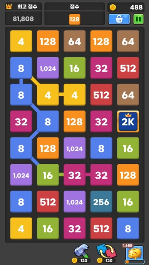 - Link the blocks to higher numbers when you merge multiple same numbers together that sums up to the next numbers.