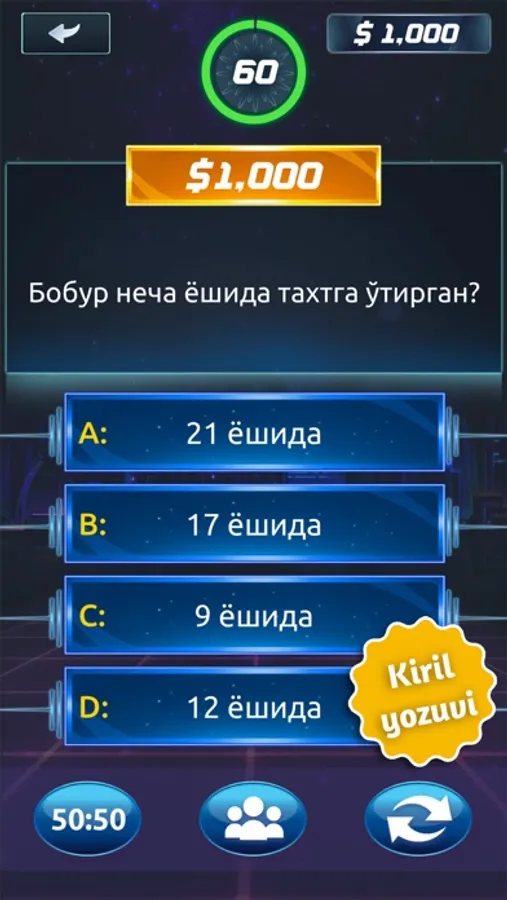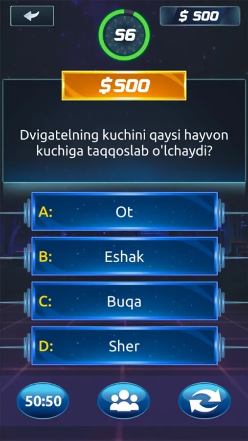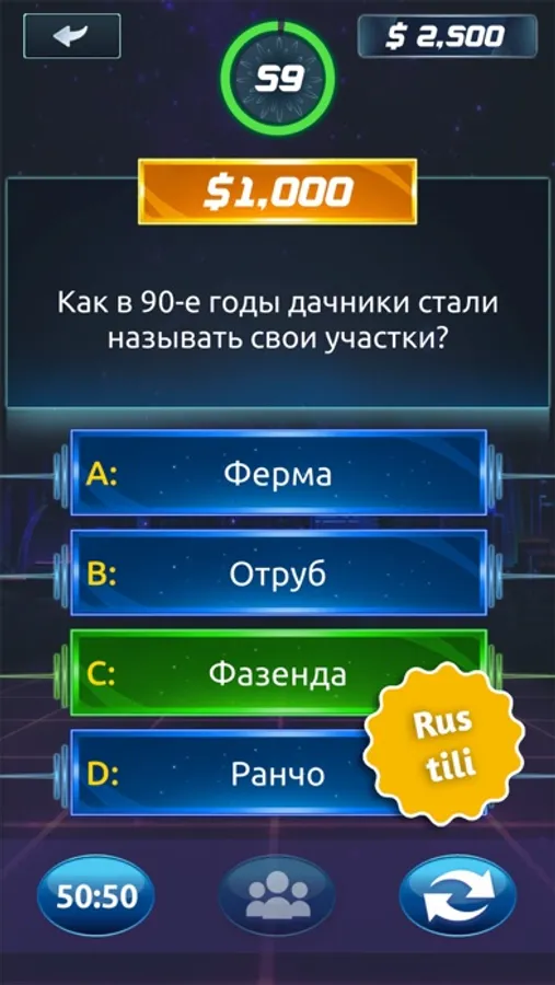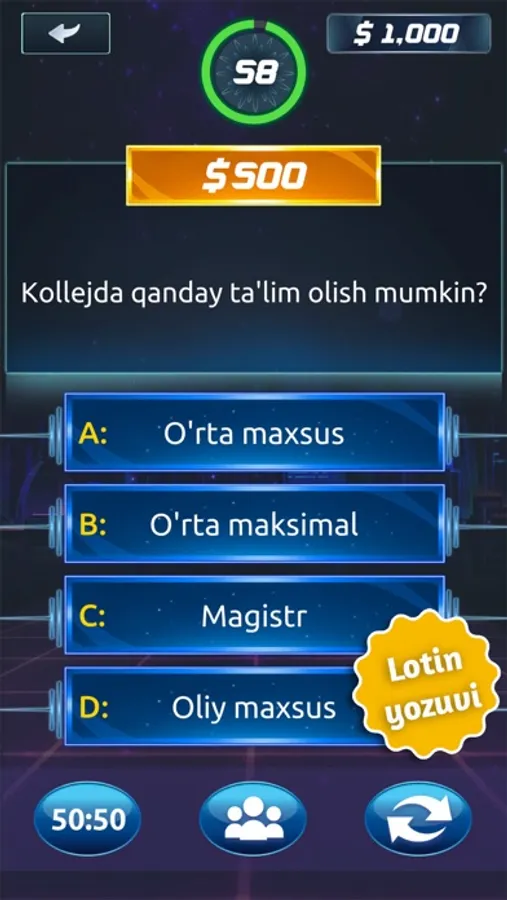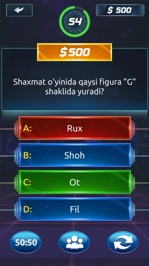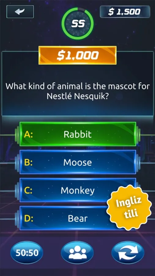 Noto'g'ri javob bersangiz o'yinni davom ettirish(tanga evaziga)