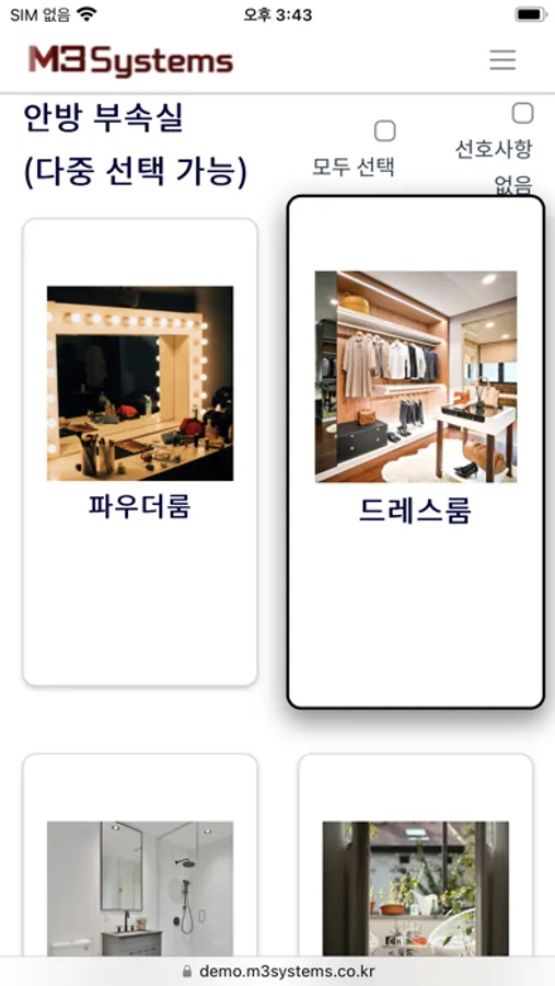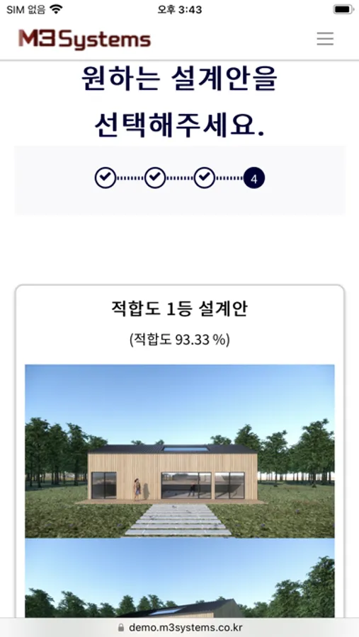 3. M3 플랫폼, 설계안 추천 - 건축주가 선택한 요구사항을 기반으로 M3플랫폼에서 유니버셜 모듈 유닛을 조합 하여 가장 적합한 기획안을 추천합니다.