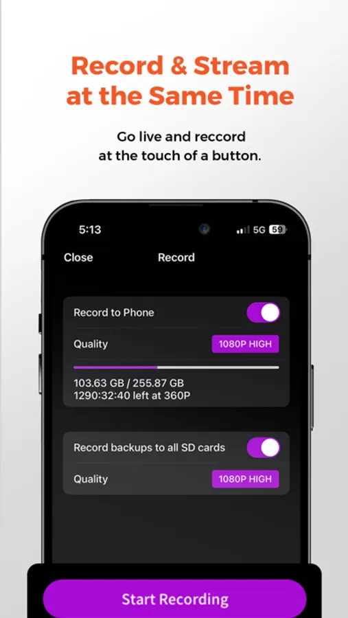 1080P HD recording: You can record audio and video to your local photo album of your mobile phone, or to the SD card of your VM33 device