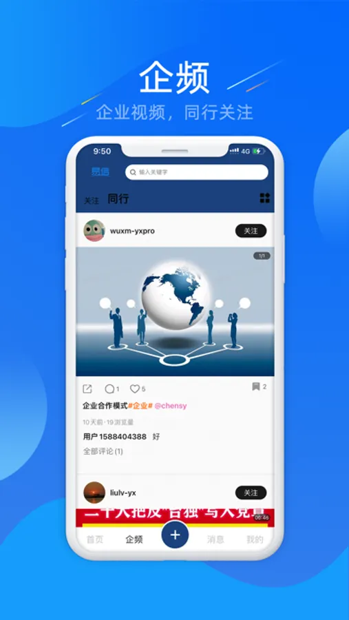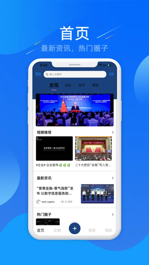 企业可以建立自己的专属圈子,并发布新闻、视频与消息,实现与同行的无障碍交流。