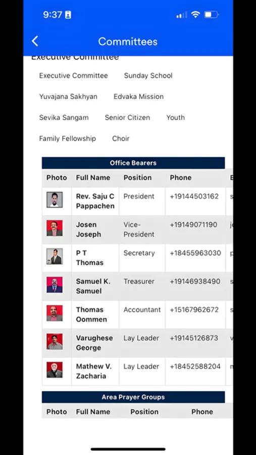All the members of community can be found through this app and can be searched based on name, member id and area prayer. The user can receive notification directly from the church, regarding any activity pertaining to the church, the history and details of the current committees can obtained from this app. Feature include Lectionary, Newsletters, church events, contact us.