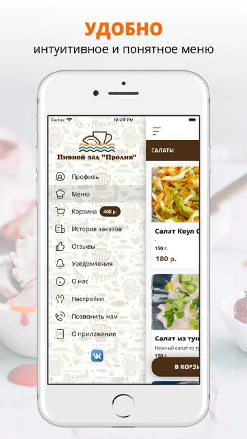 Скачивайте наше приложение, оформляйте заказ и наслаждайтесь любимой едой, где бы Вы ни были! Приятного аппетита!
