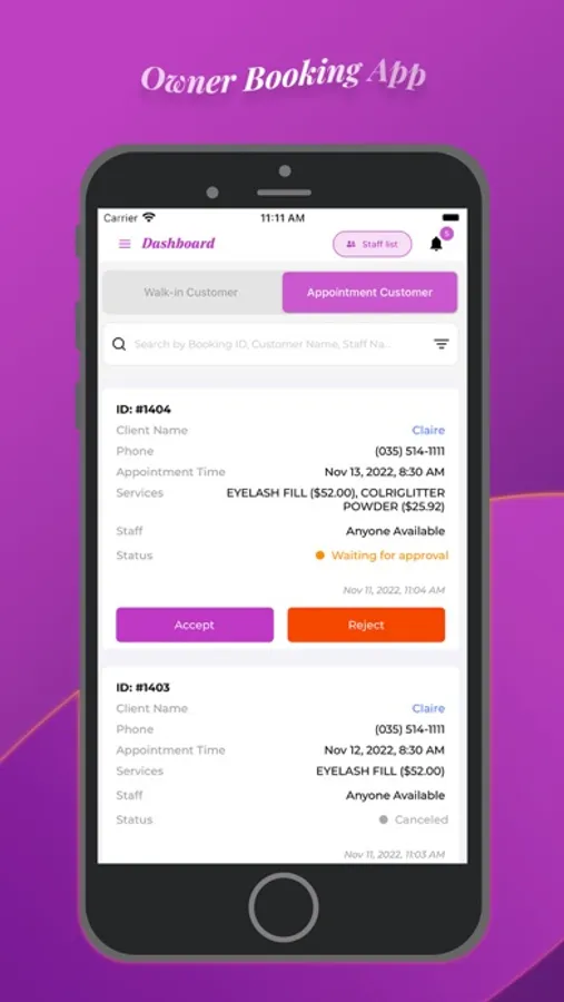 - Quản lý booking: bạn sẽ dễ dàng xem được số lượng khách đã đặt lịch hẹn trong ngày, trong một khoảng thời gian sắp tới, những thợ trong tiệm đã có lịch hẹn, sắp xếp thợ khi khách đến sử dụng dịch vụ. Và hơn hết bạn có thể xem được feedback của khách hàng đã trải nghiệm dịch vụ tại salon của mình.