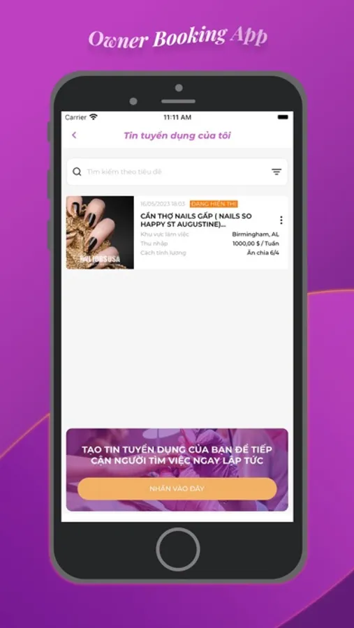 - Đăng tin tuyển dụng tìm kiếm thợ nails tại địa phương hoặc xuyên ban cho cửa tiệm, phù hợp theo yêu cầu của quý chủ tiệm