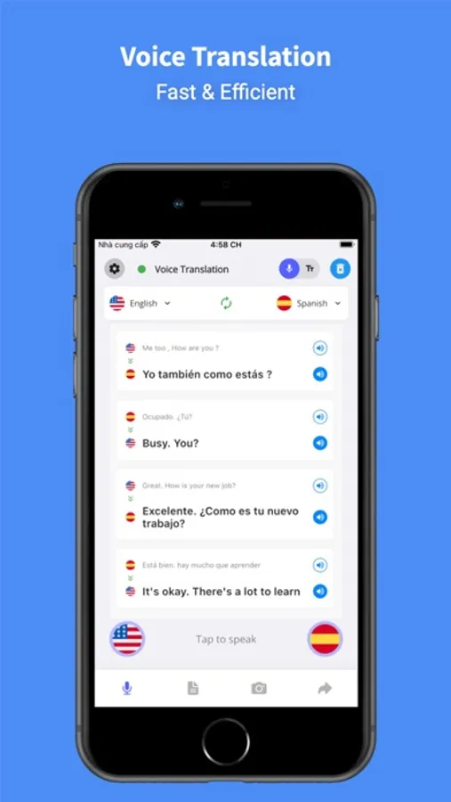 * Multilingual app for 45+ languages like English, Spanish, ..