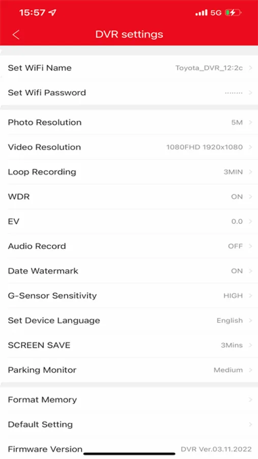 Easily change the DVR settings via the App such as video resolution, photo resolution, audio recording status, g-sensor sensitivity, loop recording duration, format SD card or reset DVR to its default settings.