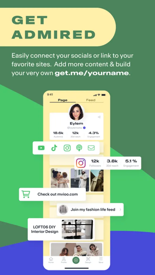 Showcase your best content, links, and files in one place or feature your social media stats directly on you page. Automatically show your latest post from social media platforms or link to your favourite sites. Create your very own get.me and easily share your link everywhere.
