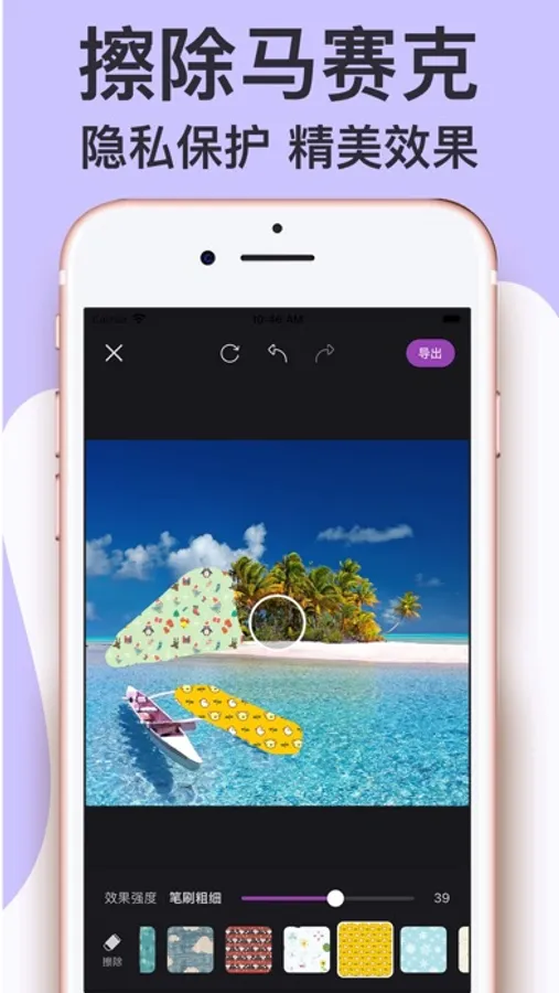 - Various advanced mosaic effects: pixel blocks, Gaussian blur, frosted glass, etc.