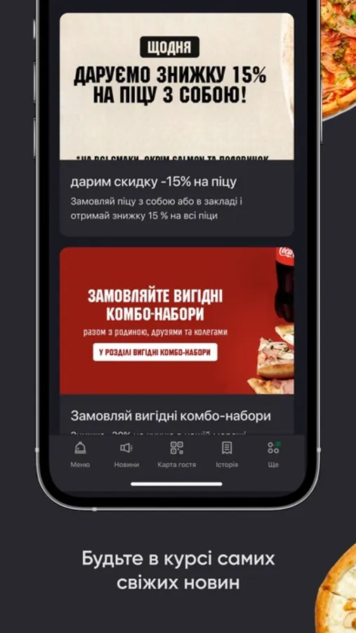 дізнатися всі актуальні новини і акції піцерії.