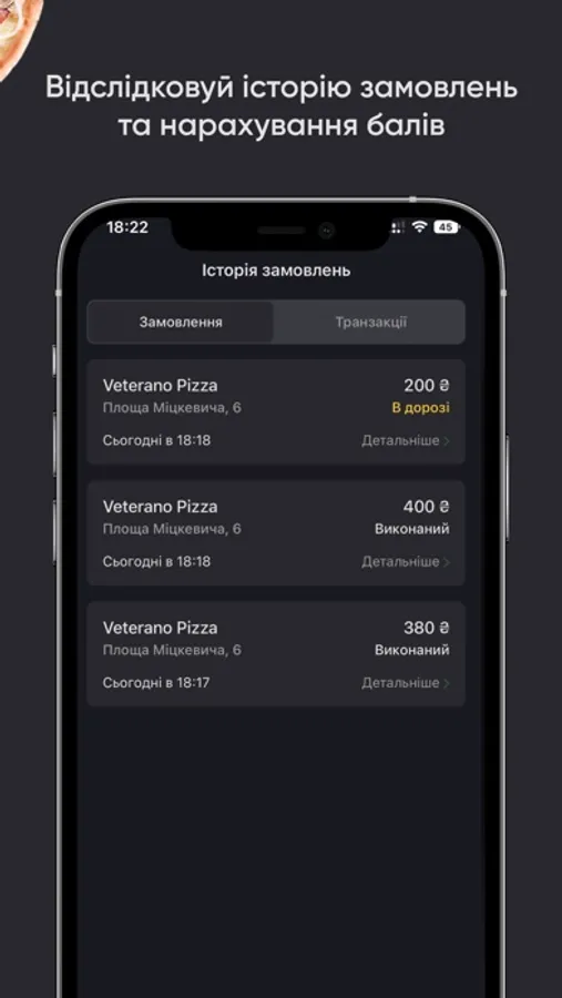 зробити замовлення піци і оформити доставку;