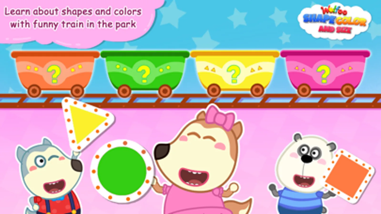 Preschool shapes, kindergarten shapes, preschool shapes and colors, sizes. You can play all in one game: Wolfoo shape color and size game. It's a great learning experience for family. There are many fun place for you to play and learn. Let's have fun with train in the park, merry go round, bouncy animals, Santa claus's house, ice cream truck