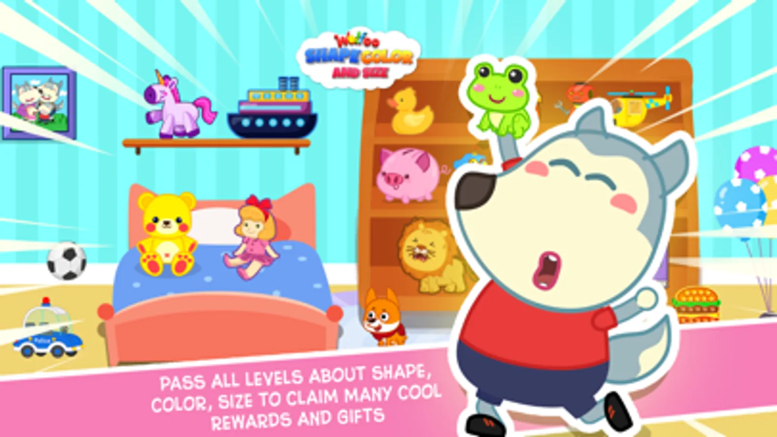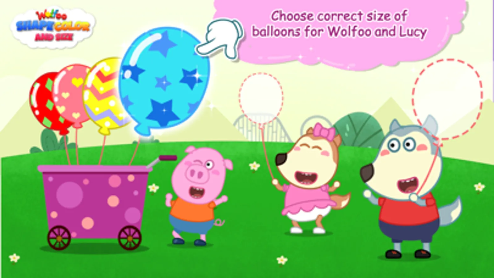 - Come to balloon store, try to give the correct size of balloon to Wolfoo and Lucy