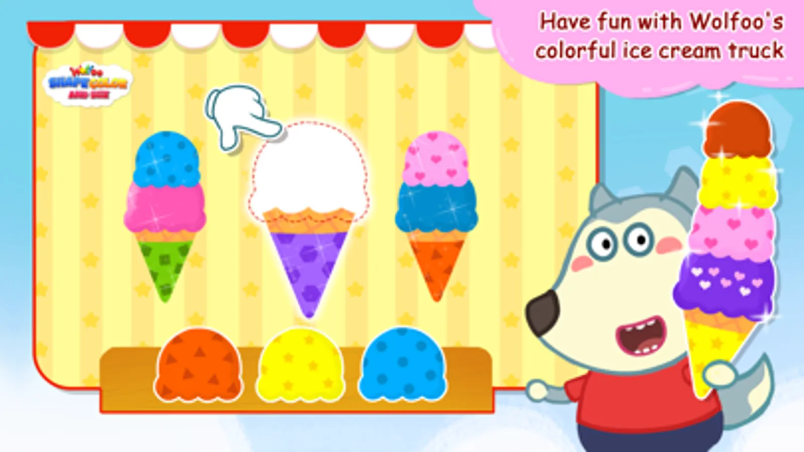 - Own a colorful ice cream truck and make tasty ice cream by their shapes, colors, sizes