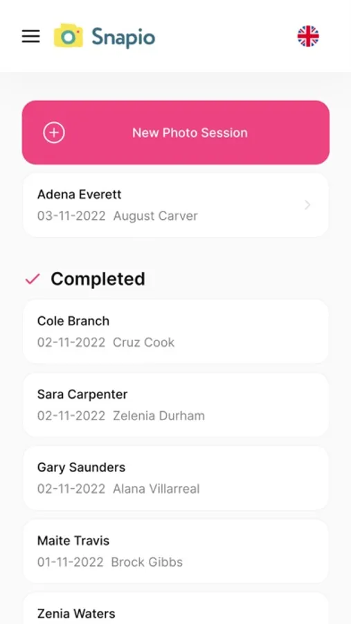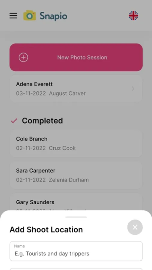 This is the shoot-manager app for Snapio. Snapio photographers will use this app during their photoshoots. This is how it works:
