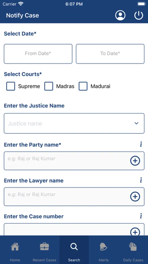 The Notify Court Case Status app will help you to find the court case status of Madras and Madurai High Courts in Tamil Nadu, India. The app enables you to set up a reminder for an upcoming court trial, and displays the case details along with an official PDF and meeting link if in case of video trials.