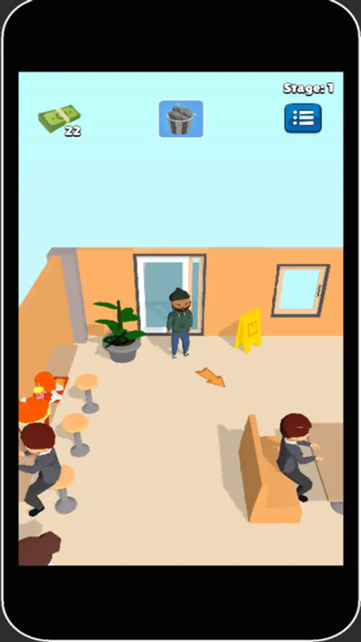 'NoPennyGuy' game is about a homeless and penniless man. He has to struggle to find free food. He goes various restaurants to have lunch without money. He has to take the other customer's foods or he has to take the meals from the kitchen. There is some goals for him. If he can manage to achieve the goals, he will get money. But if he is caught when he is taking the foods, he will be punished by cleaning the restaurant or washing the dishes.