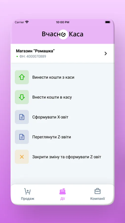 • Одним кліком закрити зміну — Z-звіт сформується автоматично!