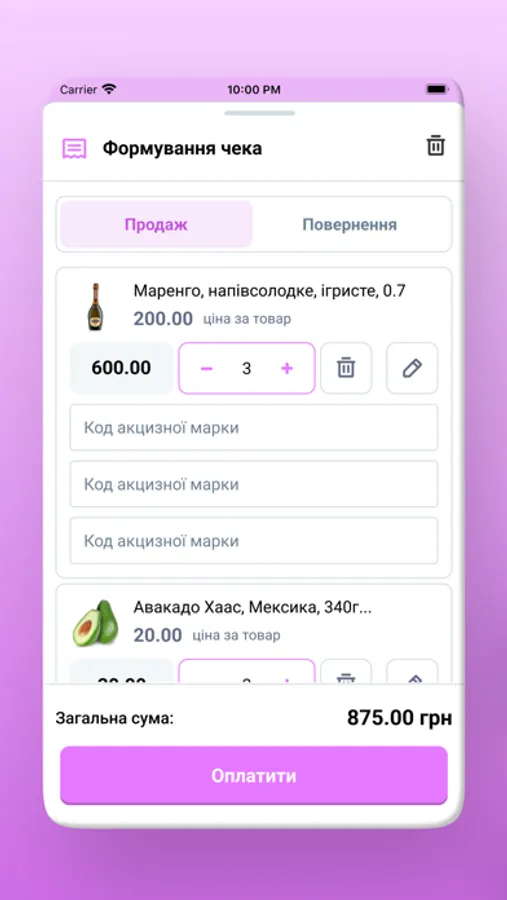 • Вводити код акцизної марки під час продажу підакцизної продукції