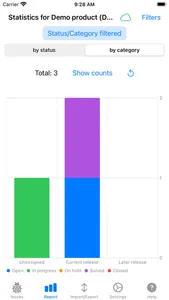 - Issue statistics with filter for products, categories and status