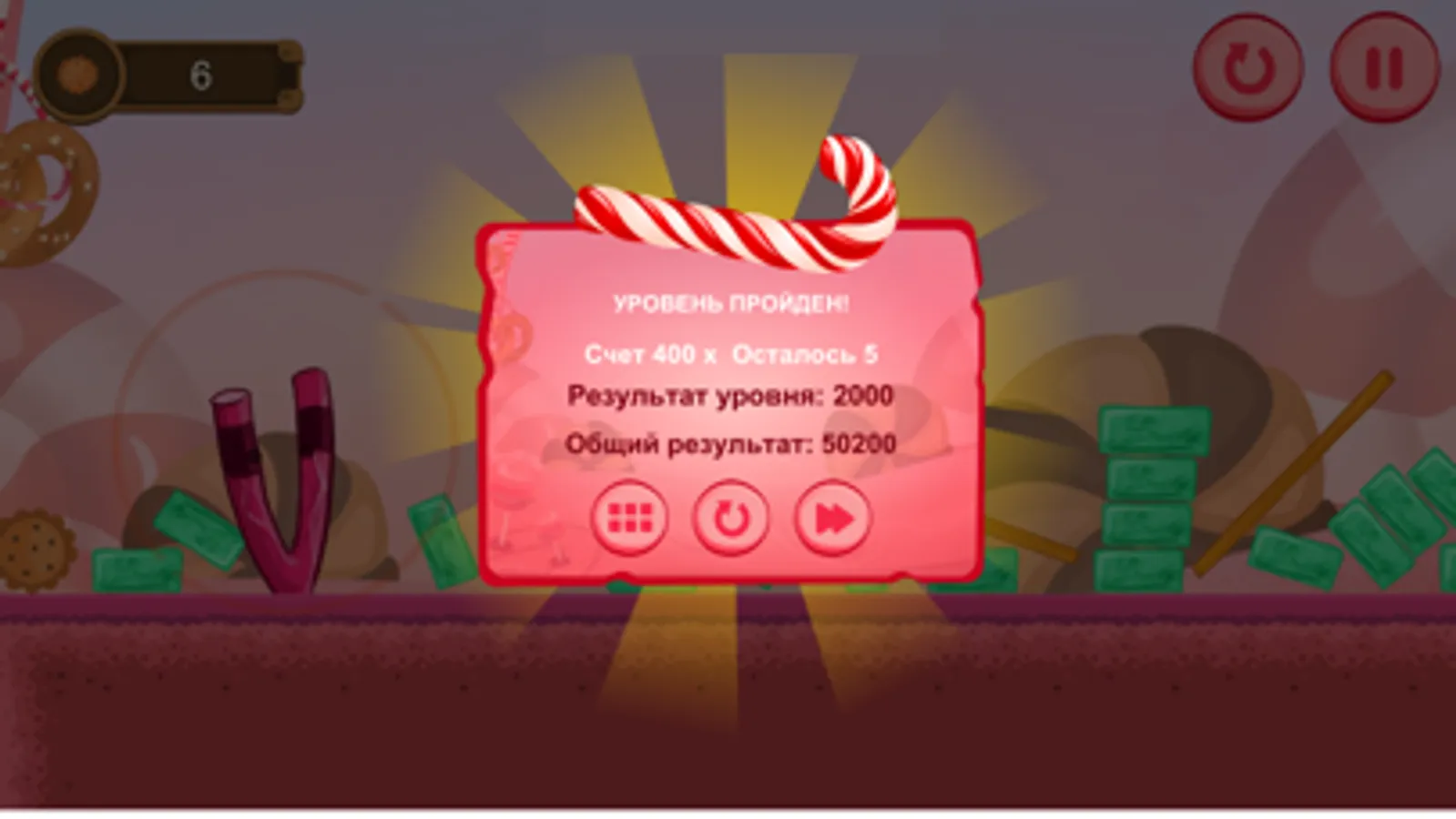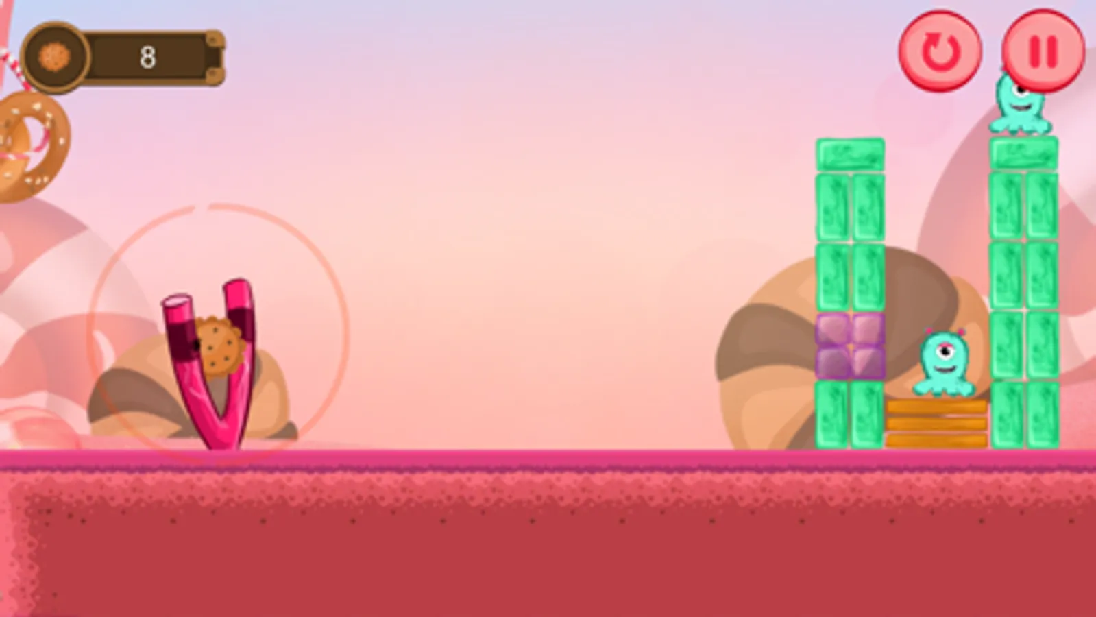 На своём пути вы будете встречать всё более сложные задания и крепкие стены! Больше сладостей - больше монстриков. Вас ждёт сладкое королевство и увлекательная игра! Скорее заряжайте рогатку и вперёд к победе!