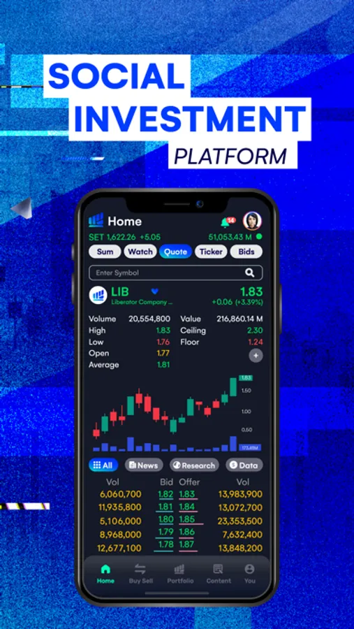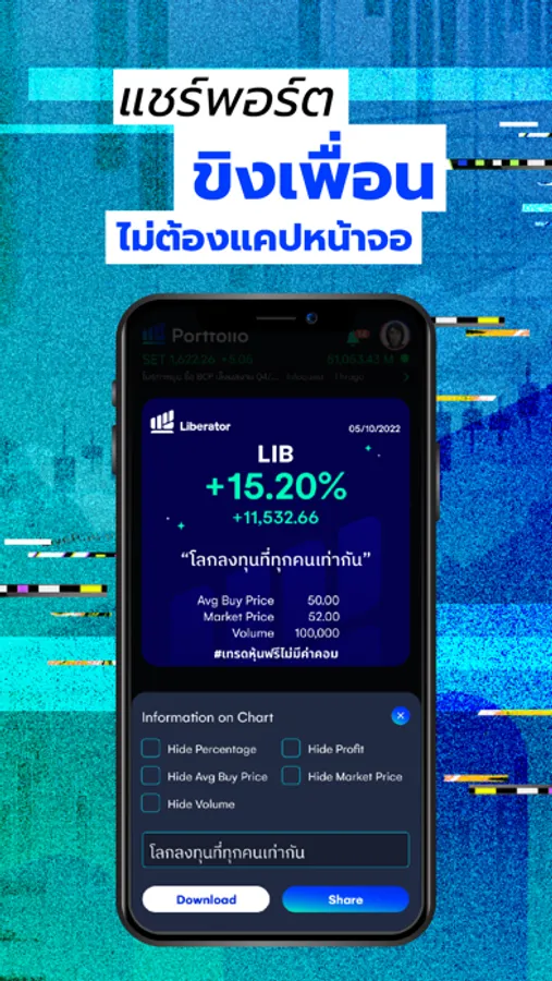 Welcome to Liberator, a premier Social Investment Platform, an industry-first in Thailand. Liberator is your gateway to the world of investing, providing you with the ability to trade stocks, including Thai stocks, and TFEX without incurring any commission per transaction.