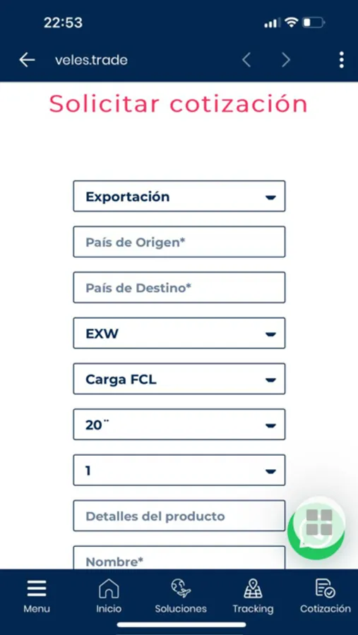 Aplicación para clientes de Veles que permite conocer sus embarques activos. Además permite visualizar y monitorear en tiempo real los eventos que se dan con sus embarques (Arribo al puerto, Descarga, etc)