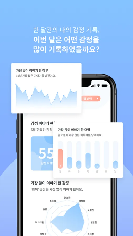- 한 달간의 감정을 알아보아요.