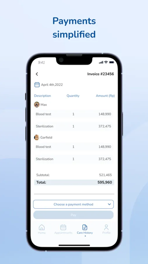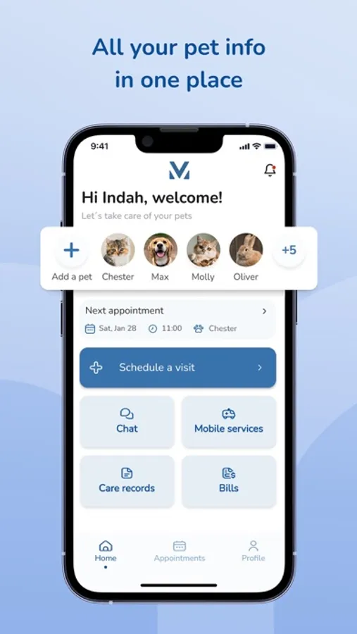- Register your pets, allowing you access to your pets’ medical history, vaccination books, and other personal details all in the palm of your hand.