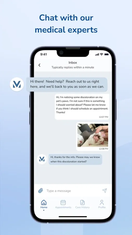 - Chat facility – Need a quick diagnosis or unsure of whether your pet requires veterinary care? Chat with one of our expert medical advisers through our in-app chat facility.