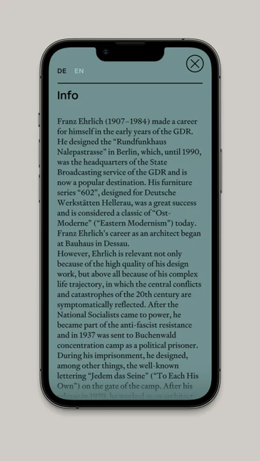 Learn more about his story in the audio walk “The Bauhausler Franz Ehrlich in Buchenwald”. Download the app and take a tour through the Buchenwald Memorial in Weimar.
