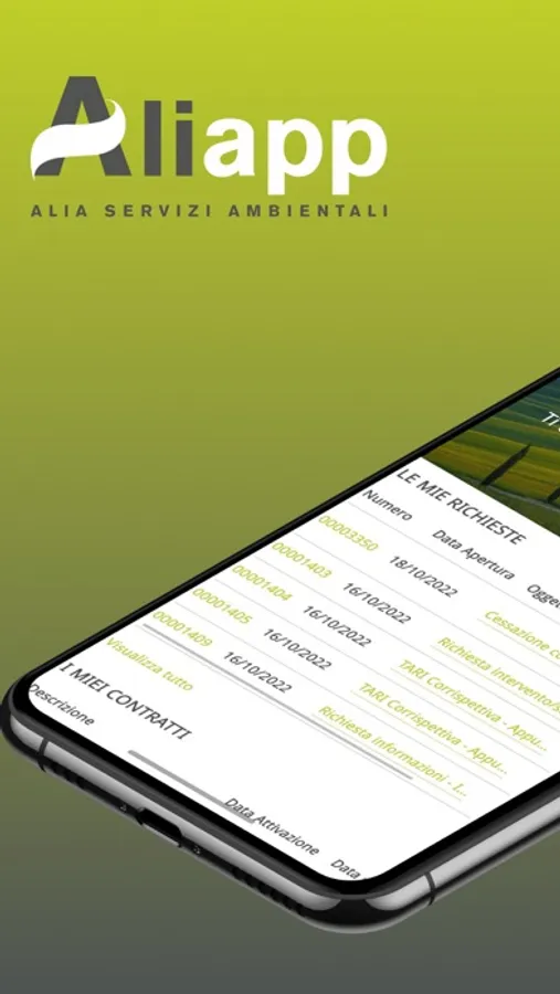 Con Aliapp sei sempre in contatto con noi, gestisci le tue richieste e tieni sotto controllo le tue utenze in modo semplice e veloce, dove e quando vuoi!