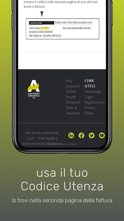 Se sei già registrato all'area clienti presente sul sito www.aliaserviziambientali.it, utilizza le stesse credenziali per accedere all'app.