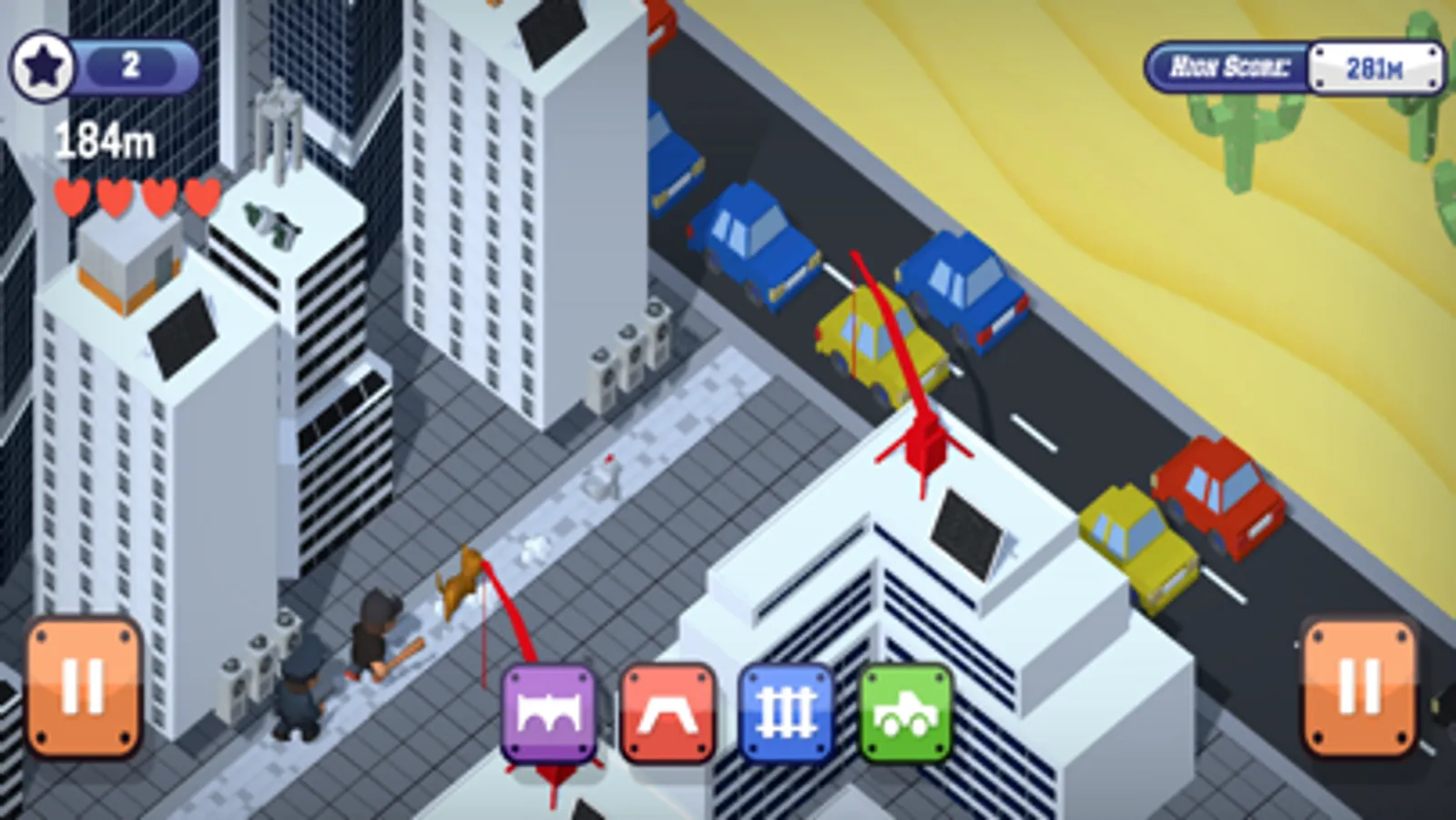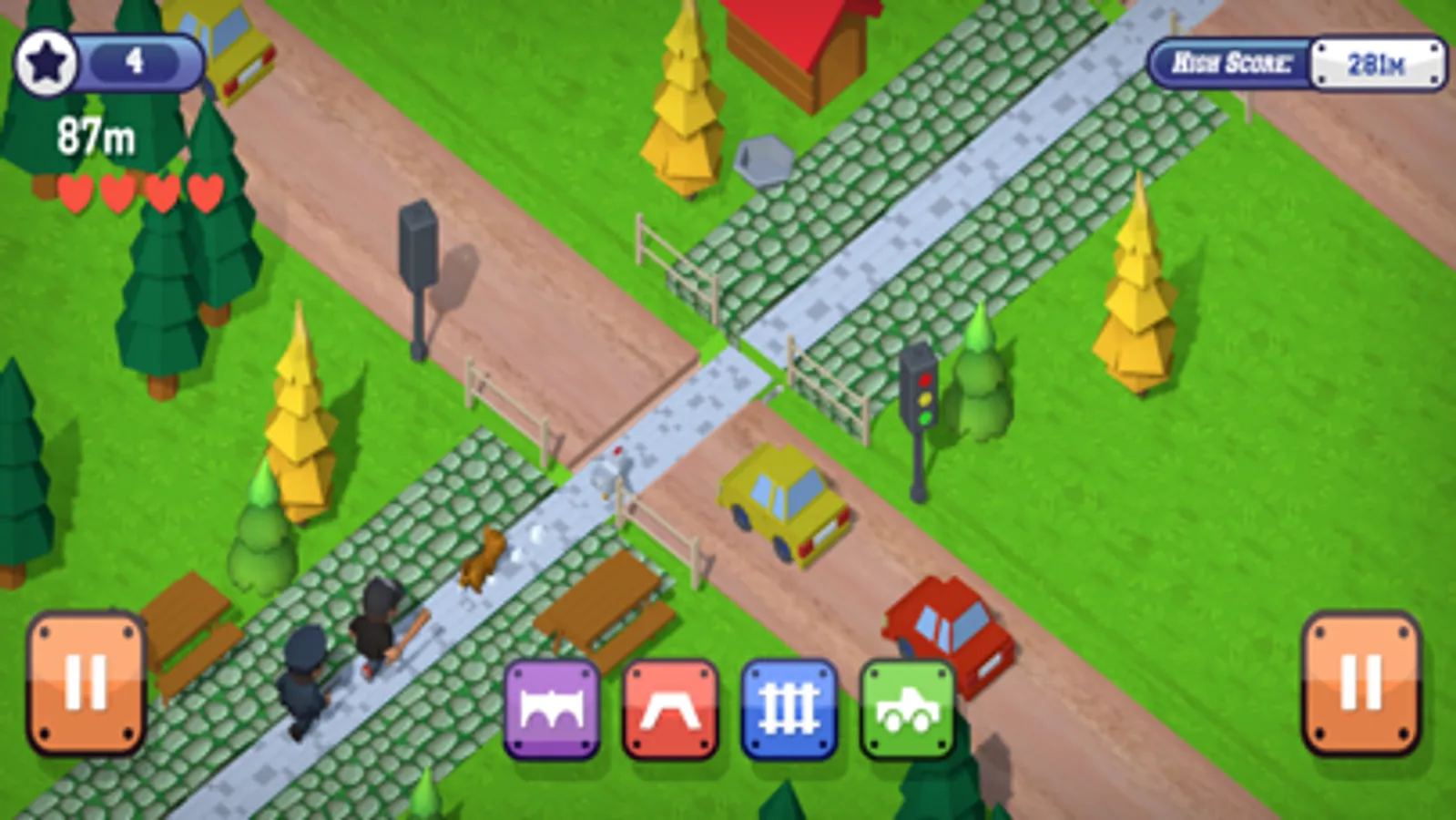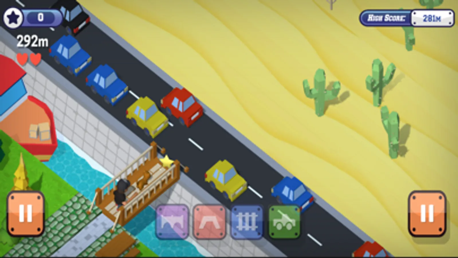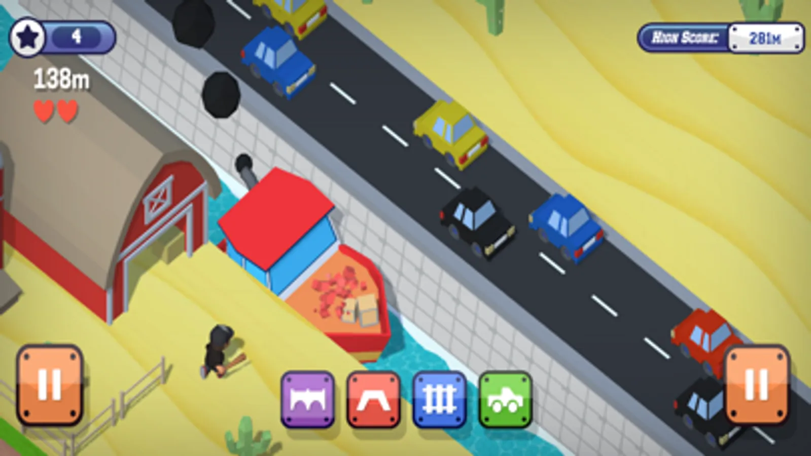 Detailed Description: Fun and colorful endless runner game with a twist. Instead of moving the characters, players avoid obstacles by building bridges, viaducts, train tracks, moving trailers using a truck or waiting for an opportunity to pass.