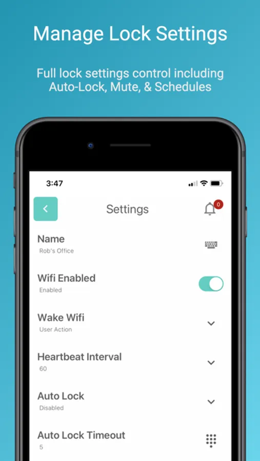 - Manage lock settings including auto-lock, mute, and lock schedules
