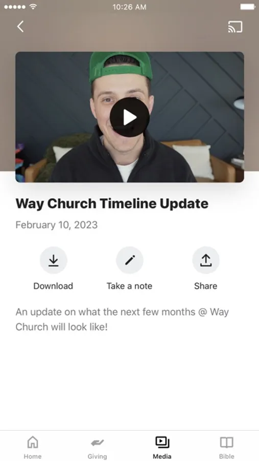 This app will help you stay connected with the day-to-day life of Way Church. With this app you can: join a group and chat with other members, RSVP to upcoming events, set up your giving, watch or listen to past messages, and download resources to help you grow in your walk with Jesus.