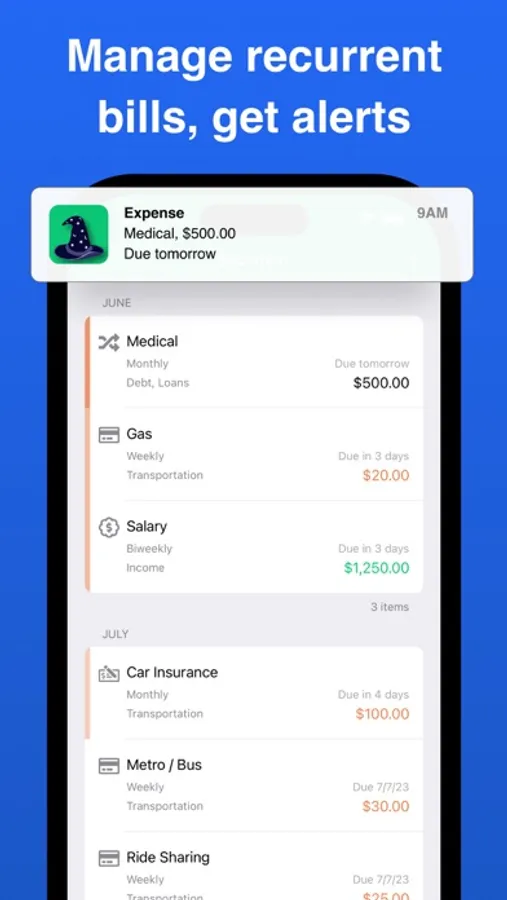 • Bill reminder - Configure up to two alerts for upcoming recurrent and the best time of the day.