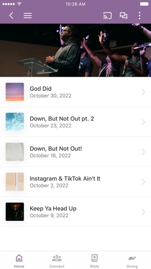 This app will help you stay connected with the day-to-day life of our church. With this app you can: watch or listen to past messages; stay up to date with push notifications; share your favorite messages via Twitter, Facebook, or email; and download messages for offline listening.