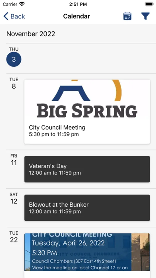 The City of Big Spring App is aimed at making life in the city easier. Residents can set up notifications, search community events, and report problems and concerns to City offices. Residents can connect in real-time to the relevant information you want simply with the touch of your fingers.