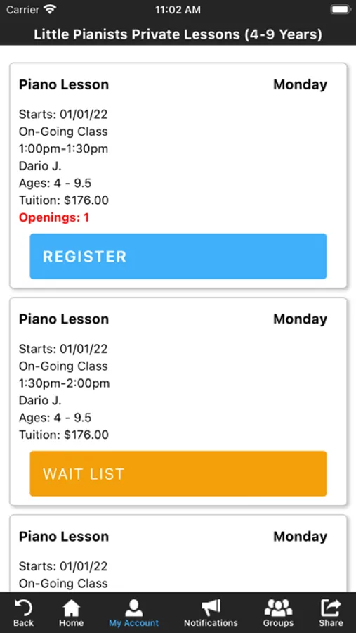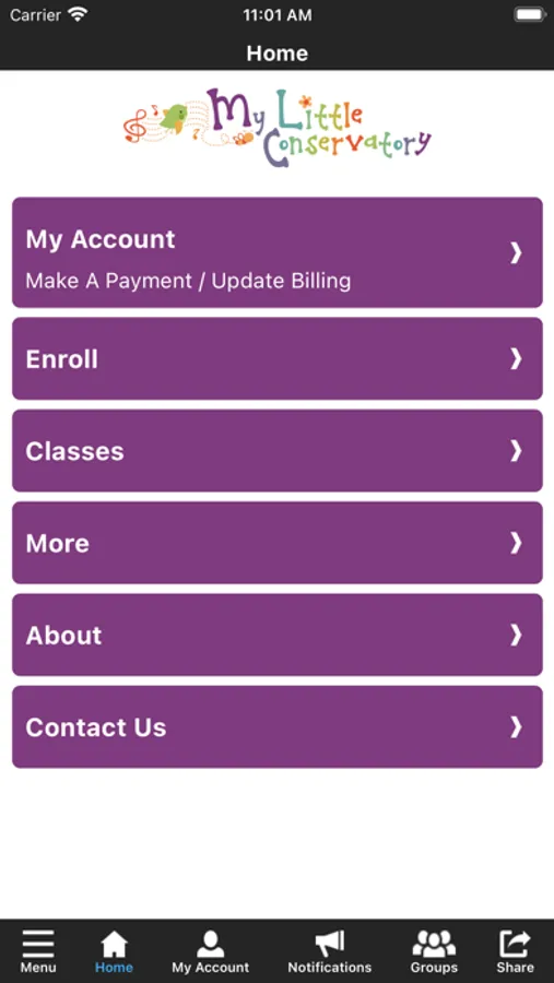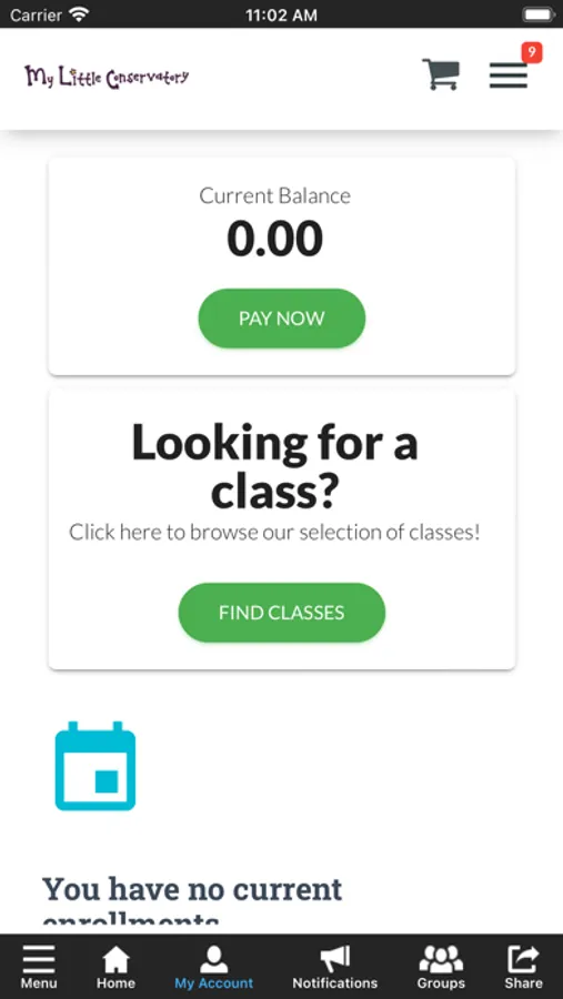 The My Little Conservatory app allows parents to manage your account with ease. You'll also receive important notifications about class changes, closings, registration openings, special announcements, and upcoming events.