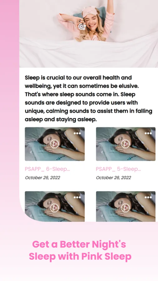 Better Sleep Through Sound Pink Sleep official mobile app is designed to provide users with unique sounds to assist them in both sleep and concentration. The app contains a library of Pink Sleep audio tracks, which can be customized to fit the user's needs. The tracks are based on Pink noise, which is a type of noise that is known to help people relax and fall asleep. In addition to the Pink noise tracks, the app also contains a number of other soundtracks that can be used for concentration and focus.
