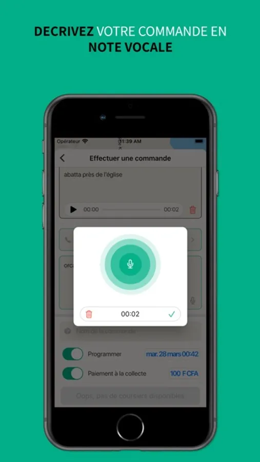 L'application de livraison de colis qui offre aux clients une expérience de commande facile et pratique. Les clients peuvent utiliser la fonction de texte ou de voix pour décrire leur commande, ce qui permet de personnaliser leur demande de livraison en fonction de leurs besoins spécifiques.