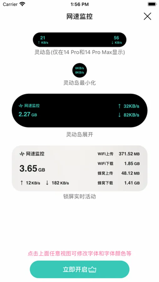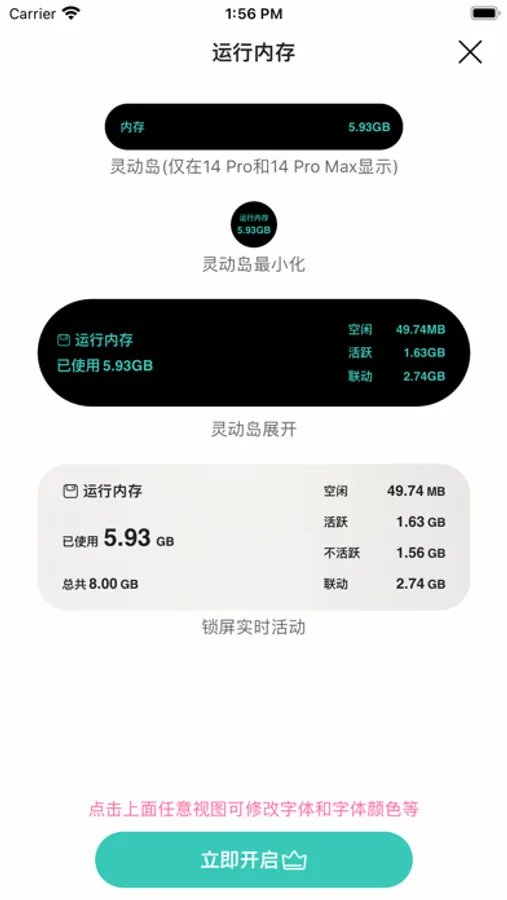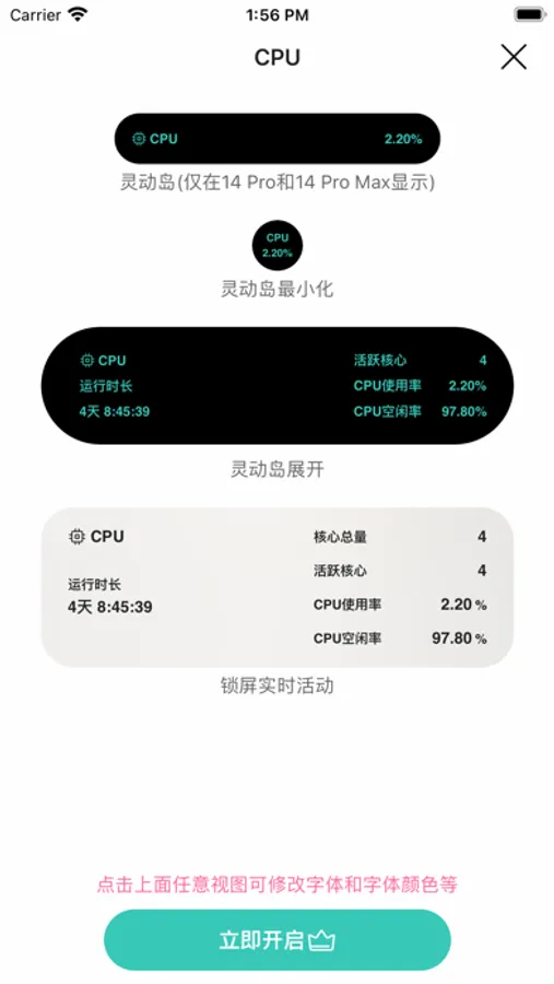 可在灵动岛和桌面锁屏上显示网速、实时位置、CPU和运行内存等信息。