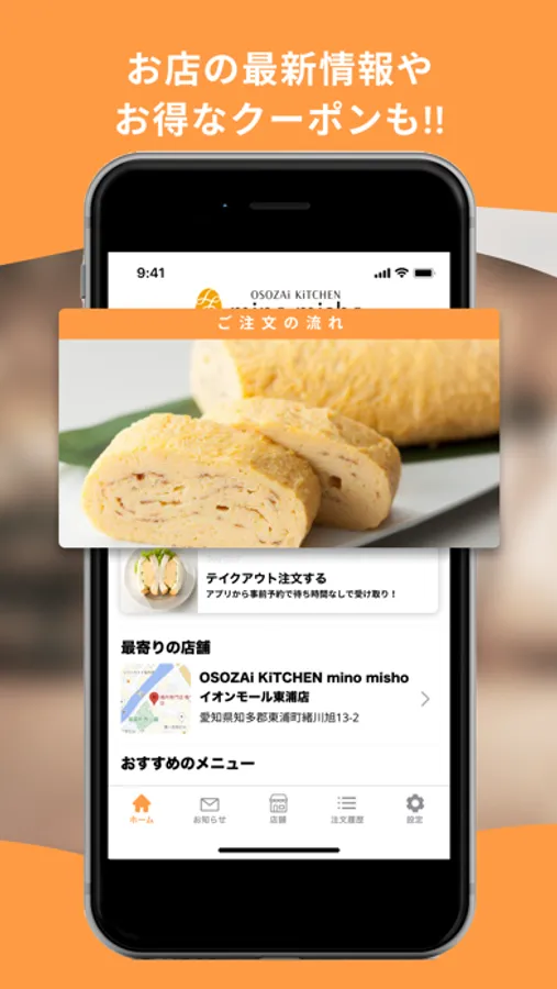 各店舗からモバイルオーダーの際に利用できるお得なクーポン情報が配信されます!
