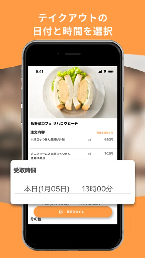 受け取りたい時間を指定し、アプリ内でラクラク簡単に事前注文・決済を済ませることができます。