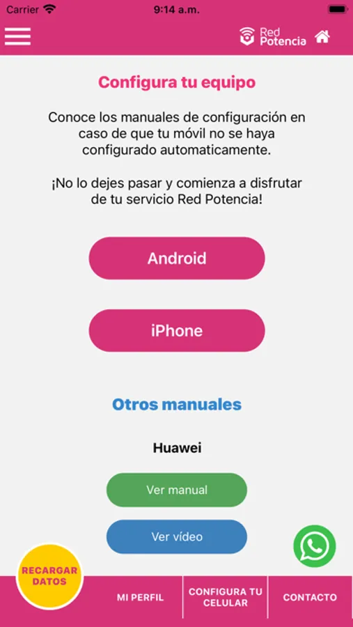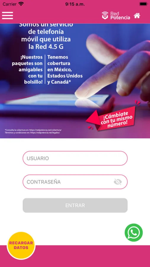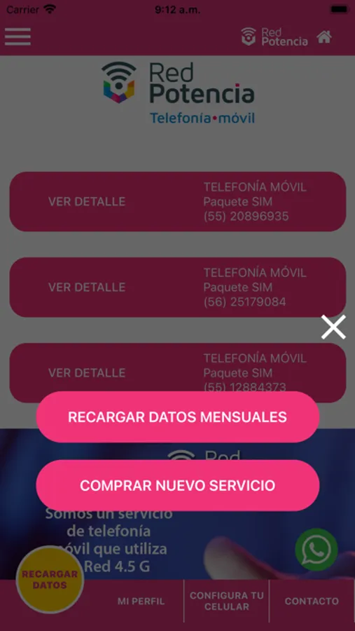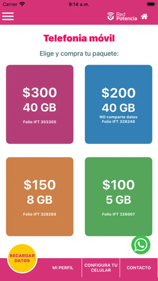 Con la app de Red Potencia, puedes recargar tu paquete de datos móviles sólo con tu número de teléfono, también puedes comprar un nuevo SIM (chip) para tu teléfono si cumple con los requisitos tecnológicos.