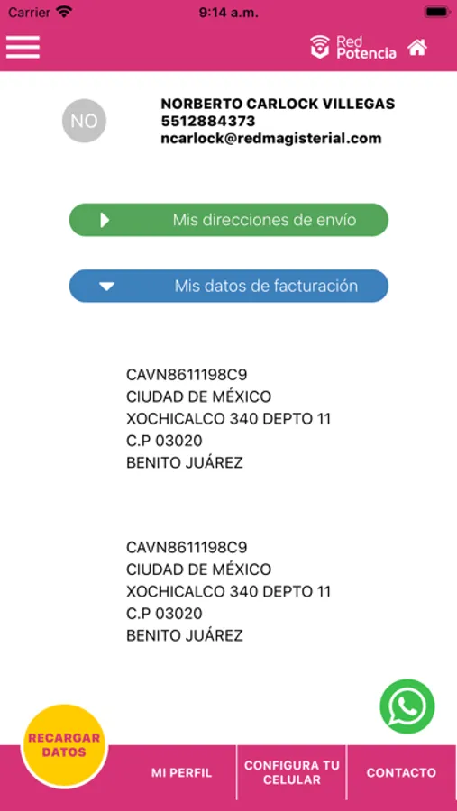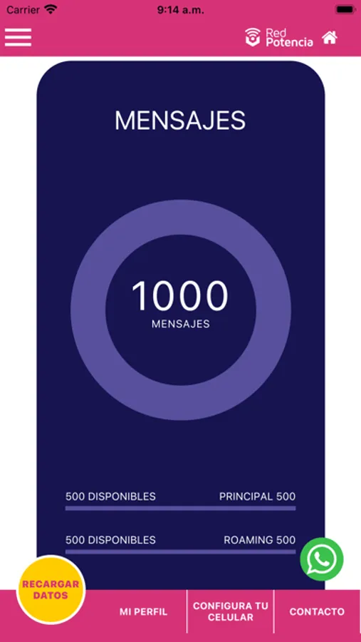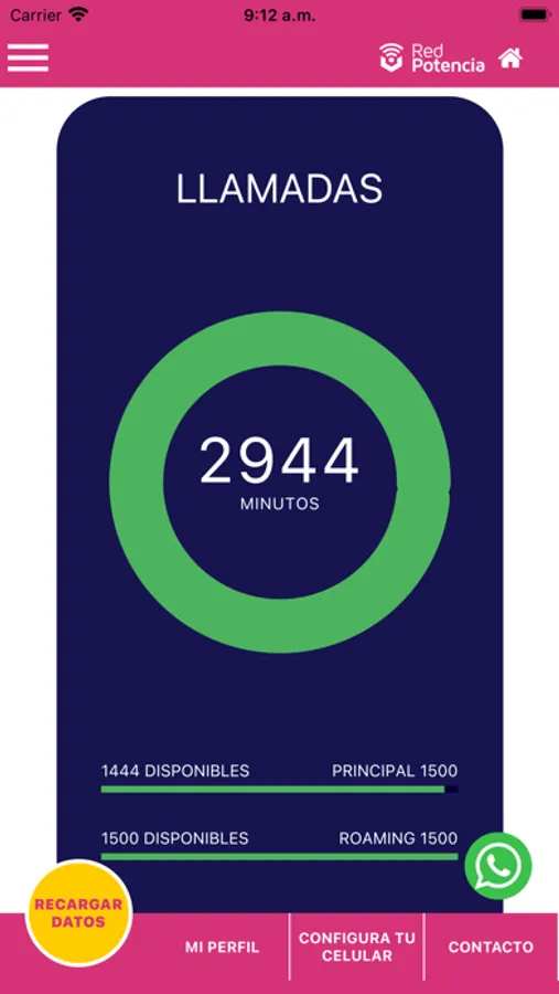 Una vez ingresado tu usuario y contraseña, en la app de Red Potencia puedes revisar el detalle de tu consumo personal de datos, minutos de llamadas de voz y mensajes SMS, además de ver tus datos personales y de facturación, también podrás contactar directamente con nuestro centro de servicio al cliente por si tienes alguna consulta que quieras hacer.